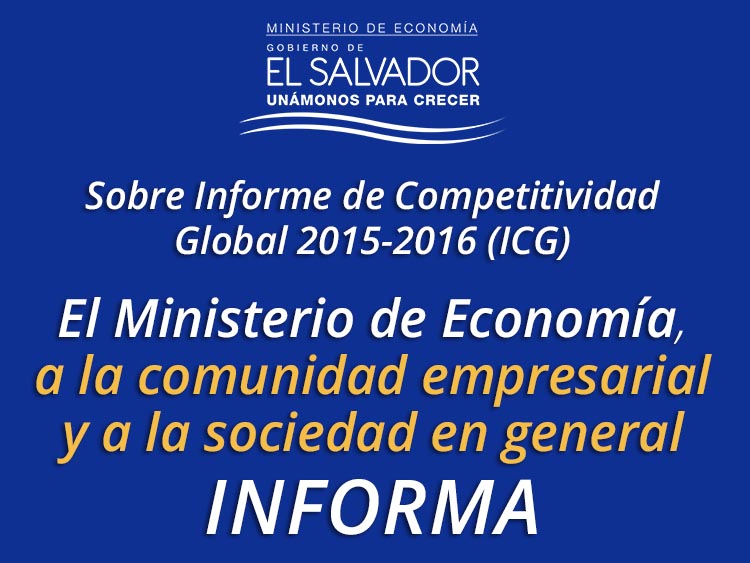 Que este 30 de septiembre se ha conocido la publicación oficial del Informe de Competitividad Global 2015-2016 (ICG) elaborado por el Foro Económico Mundial (FEM), en el que El Salvador se ha ubicado en la posición 95 de un total de 140 países evaluados.