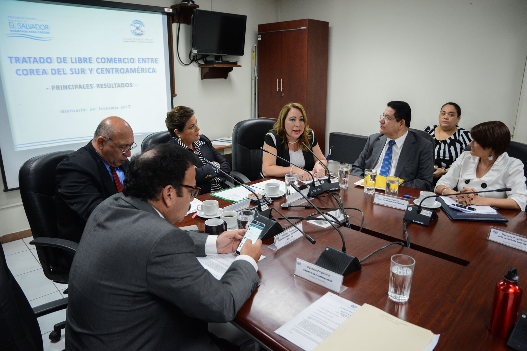 La viceministra de Economía, Luz Estrella Rodríguez, visitó por segundo día consecutivo la Asamblea legislativa con el objetivo de dar a conocer a los diputados los principales resultados obtenidos tras finalizar las negociaciones para la firma de un Tratado de Libre Comercio entre Centroamérica y Corea del Sur.